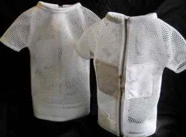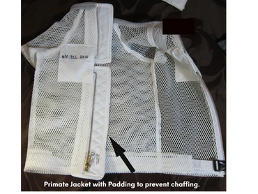 We can customize almost any sewing need you have and collaborate to help you find solutions to all sorts of sewing issues, including sizing and comfort issues to the animals.  Many of the jackets are sold in standard sizes and measurements, one of the styles the zippers are covered with quilting to provide additional comfort, while the other style has grommets that are installed at the waist and neck for additional sizing adjustments. The tether jackets are made with pockets and can typically be changed without removing the primate from tether.