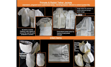 We have been sewing and working with the Washington National Primate Research Center (NPRC), Kiem Lab, Boston Children's Hospital-Biomere and the Infant Primate Research Lab (IPRL) creating personal protective equipment (PPE), tether jackets, bare huggers, surrogates and items often used to assist in research for over 25 years.